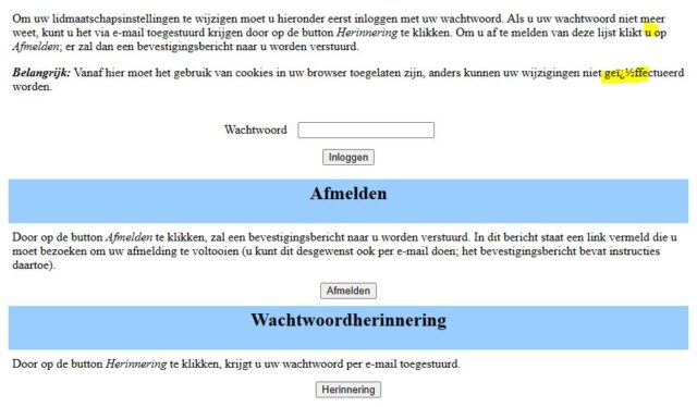 Afmelden: Je kan dit zelf doen op je  persoonlijke pagina. Gebruik hiervoor de link in je welkomstpagina met wachtwoord of klik hier. Je kunt op deze pagina je wachtwoord opvragen.