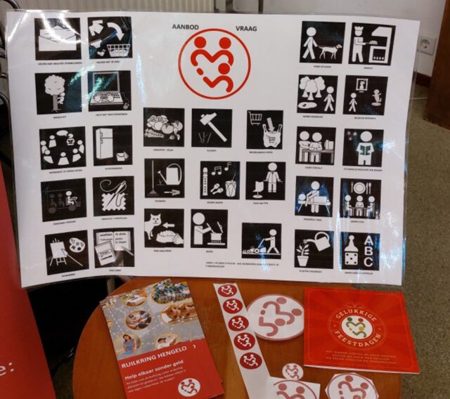 Ruilkring Hengelo maakt gebruik van pictogrammen. Visuele communicatie is helpend voor sommige mensen. Ik vond het inspirerend dat daarbij niet alleen foto’s worden gebruikt (zie voorbeeld van LETS ’t Gooi), maar ook passende pictogrammen worden benut.
